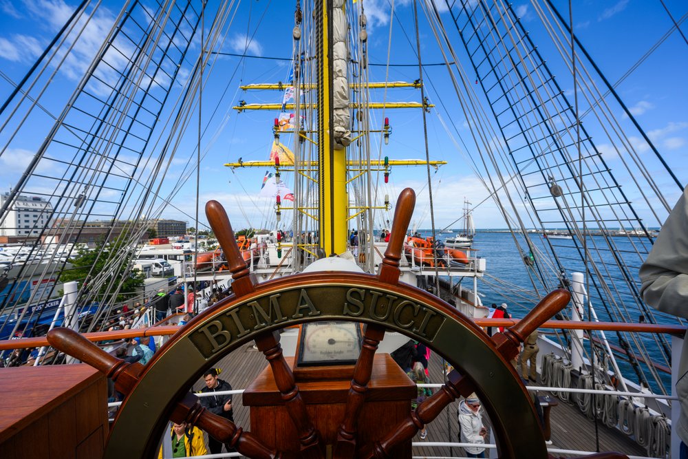Das Herzstück der Rostocker Hanse Sail sind die über 100 Traditions- und Museumsschiffe, die du bei den Regatten in voller Fahrt von Land erleben oder sogar selbst an Bord gehen kannst. Lerne das Schiff, das Meer und die Crew beim Mitsegeln kennen.